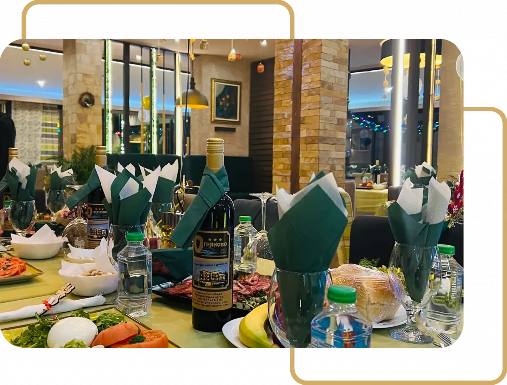 Разполагаме с елегантен ресторант със 100 места и модерна озвучителна система, гарантиращи перфектната атмосфера за вашите гости.