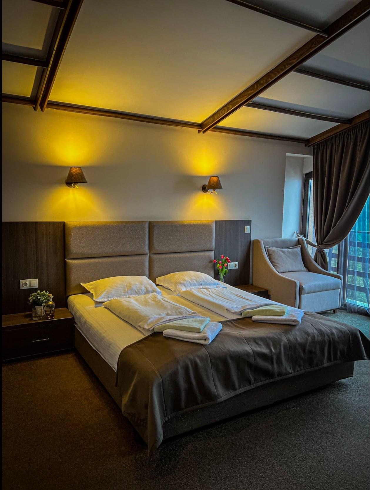 Изберете Junior Suite с джакузи, защото заслужавате повече от обикновено настаняване – заслужавате атмосфера на спокойствие, интимност и изящество. Апартаментът е подходящ както за романтични бягства, така и за специални поводи, които искате да направите незабравими. Настаняването е след 14:00 ч., а освобождаването – до 12:00 ч., така че да се насладите на всяка минута истинско щастие. Резервирайте още сега без колебание и си подарете истинско СПА преживяване само за вас.