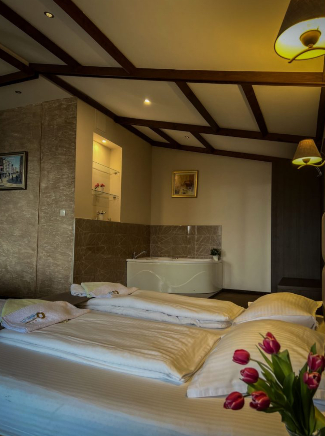 Черешката на тортата си остава нашето луксозно джакузи, с което всеки ден от престоя ви може да се превърне в истинско и ексклузивно СПА събитие. Пристъпвайки през прага на нашия специален апартамент Junior Suite с джакузи, вие ще откриете луксозна, стилна и елегантна обстановка, която включва: