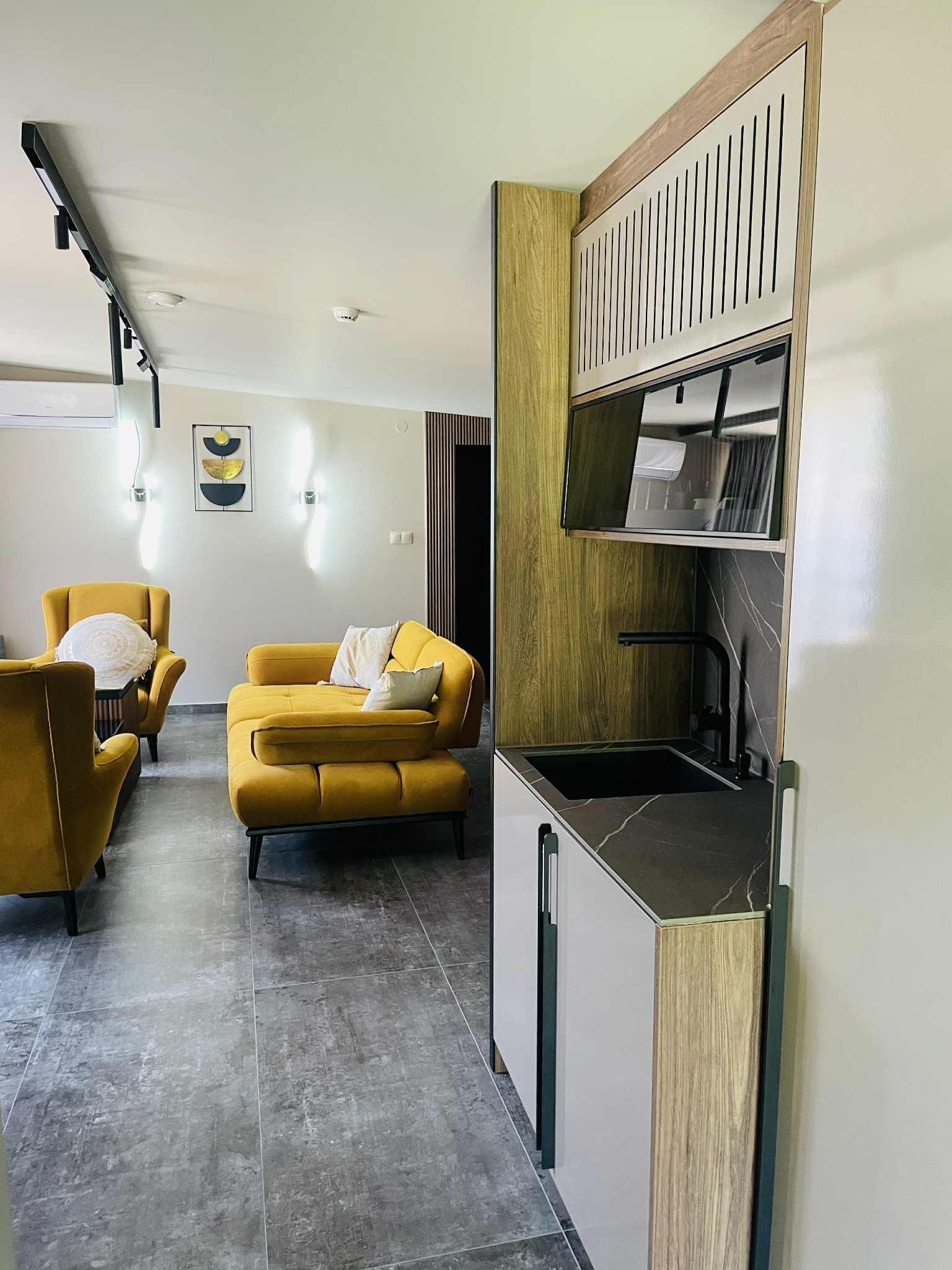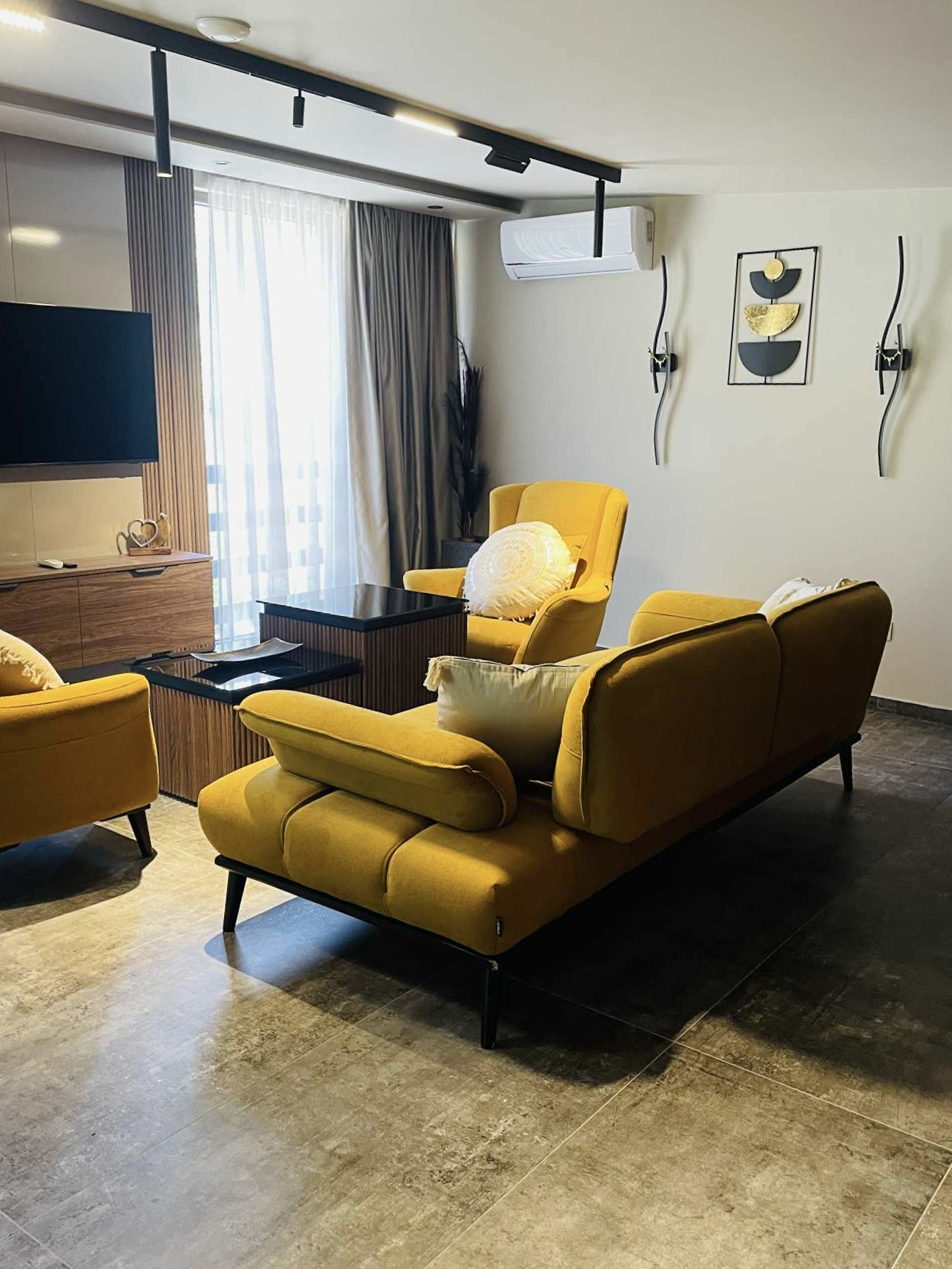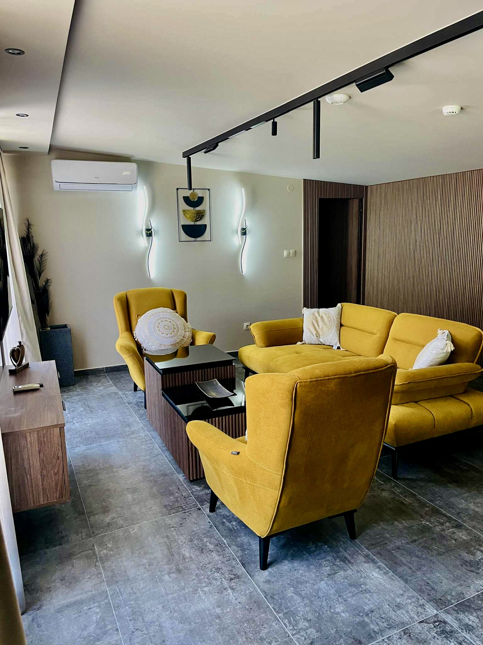 Просторен хол с удобен диван, идеален за семеен уют или време за себе си